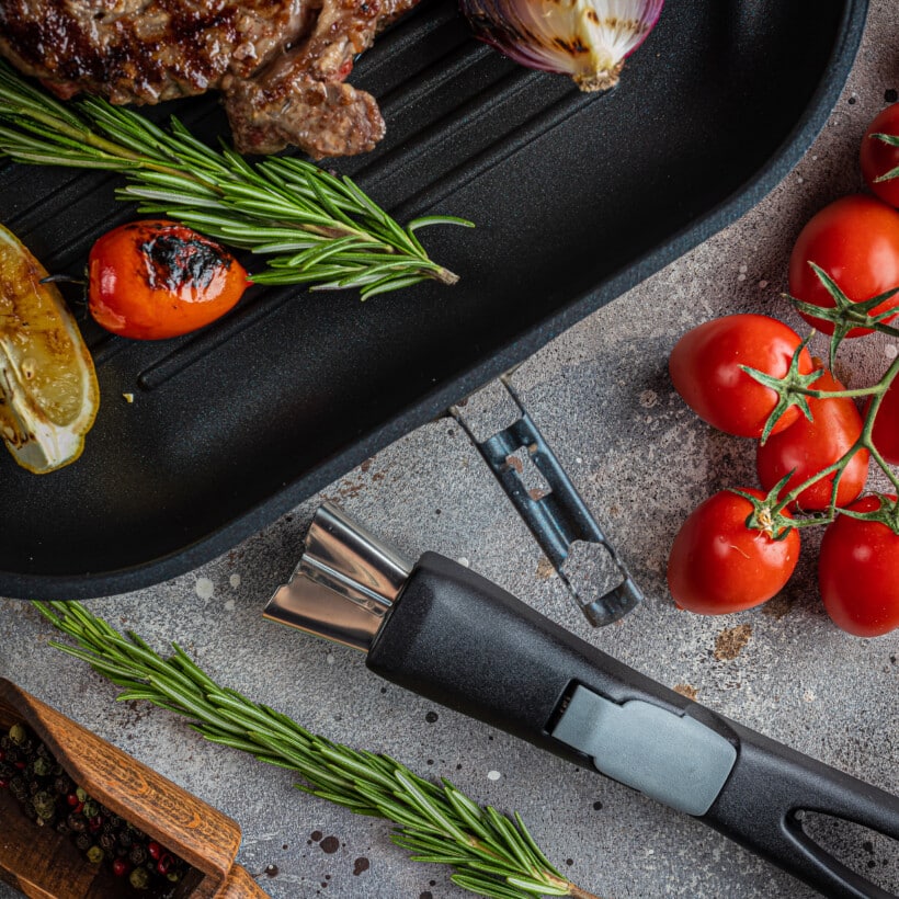 Enthüllt den authentischen Geschmack aller Zutaten und zeichnet mit den optischen Grillstreifen den gewissen « Restaurant-Touch ».